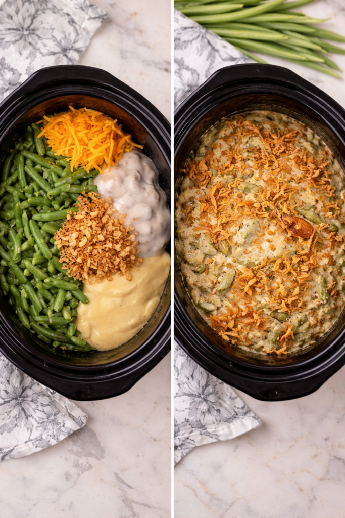 Crock Pot Green Bean Casserole combines the comforting flavours of a classic recipe with the ease and convenience of slow cooking. Its creamy sauce, tender green beans, and crispy onion topping create a dish that feels both nostalgic and effortless. Perfect for everyday dinners or special celebrations, this recipe proves that simple ingredients and gentle cooking can produce truly satisfying results.