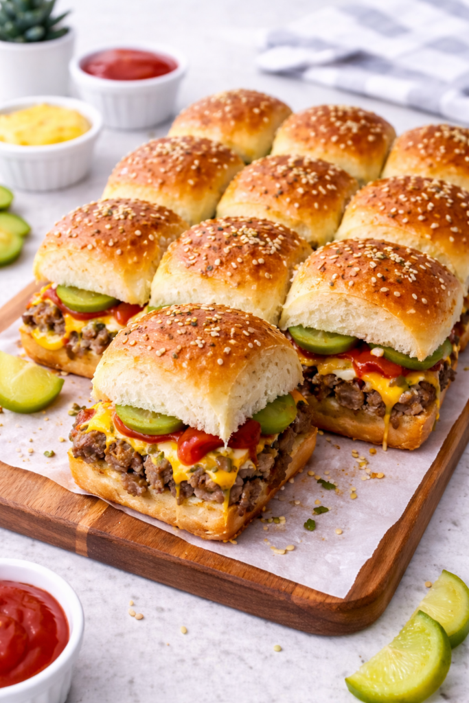 Irresistible Pull-apart cheeseburger sliders prove that comfort food doesn’t need to be complicated. With minimal prep and maximum flavour, they’re perfect for busy weeknights and special gatherings alike. Every bite delivers juicy beef, melted cheese, and buttery rolls that pull apart effortlessly.