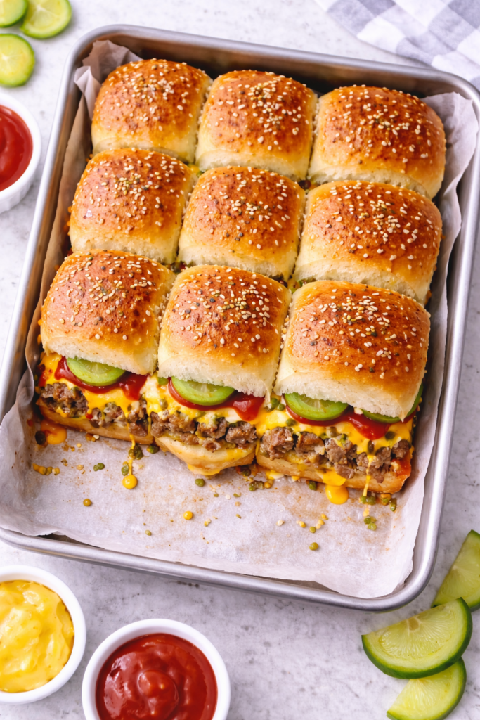 Pull-apart cheeseburger sliders pair perfectly with simple sides: